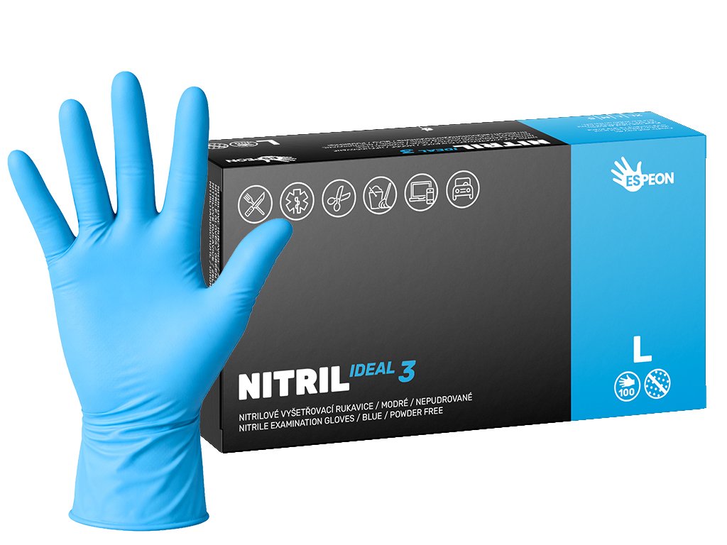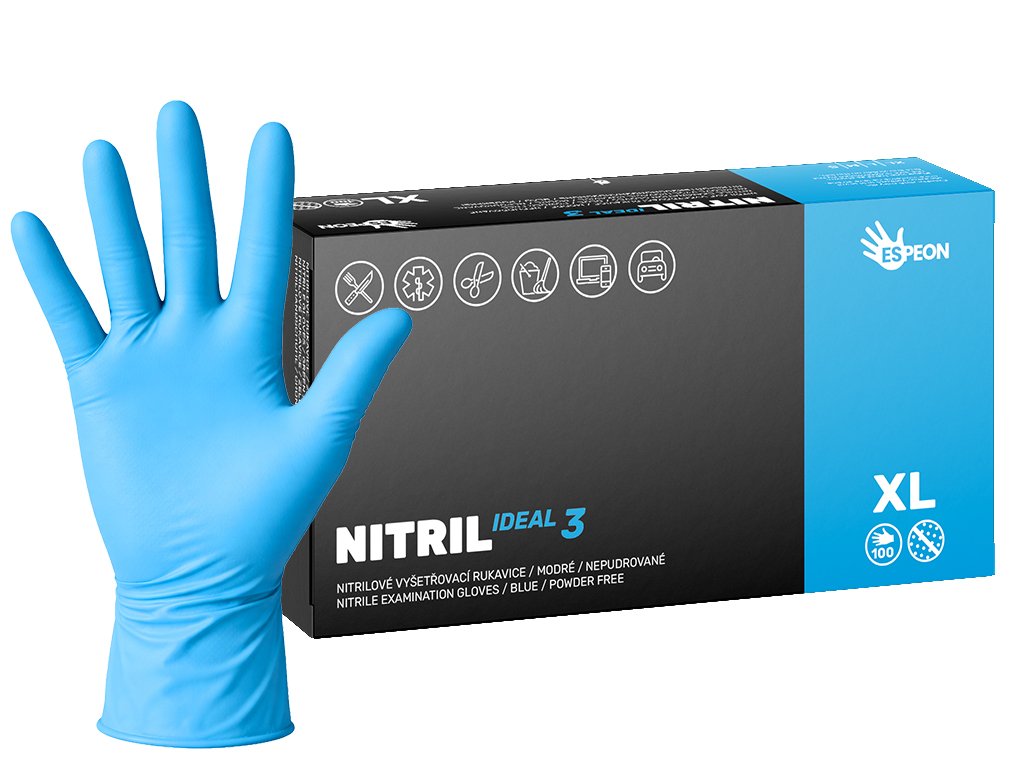 Nitrilové rukavice NITRIL IDEAL3 100 ks, nepudrované, modré, 3.5 g