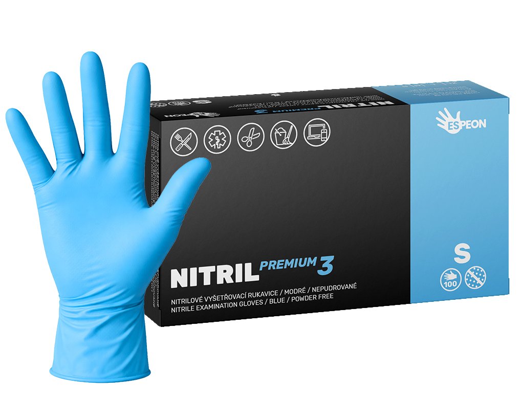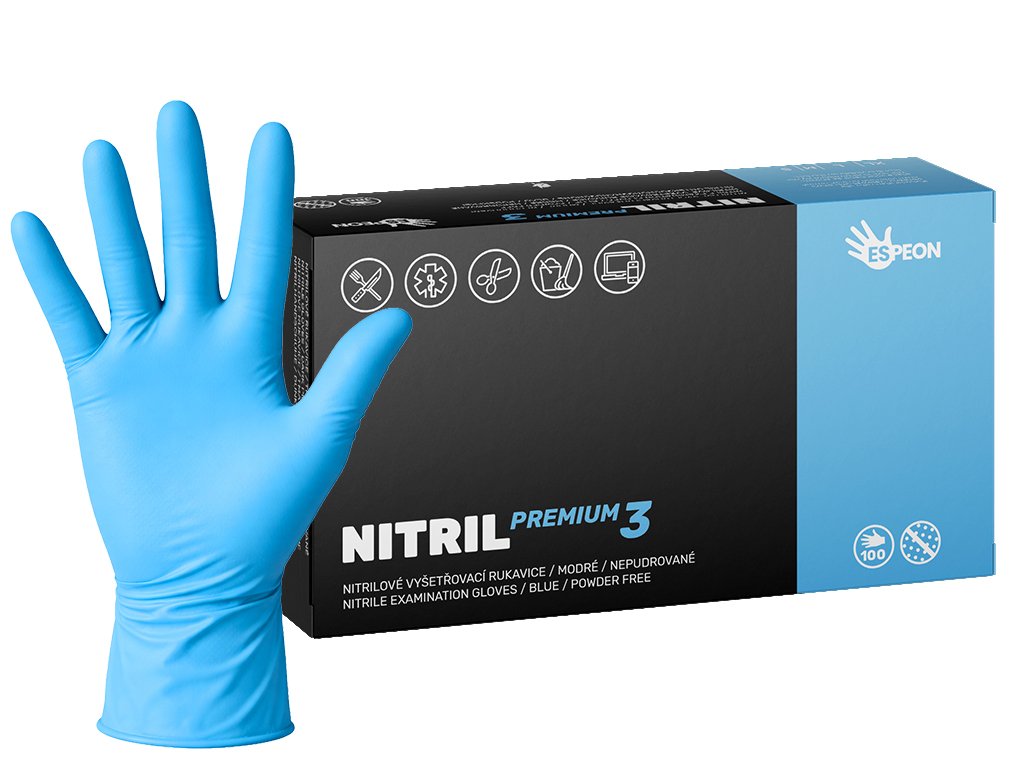 Nitrilové rukavice NITRIL PREMIUM3 100 ks, nepudrované, modré, 4.0 g