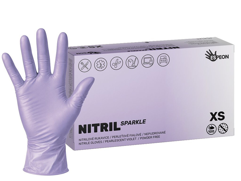Nitrilové rukavice NITRIL SPARKLE 100 ks, nepudrované, perleťově fialové, 4.0 g