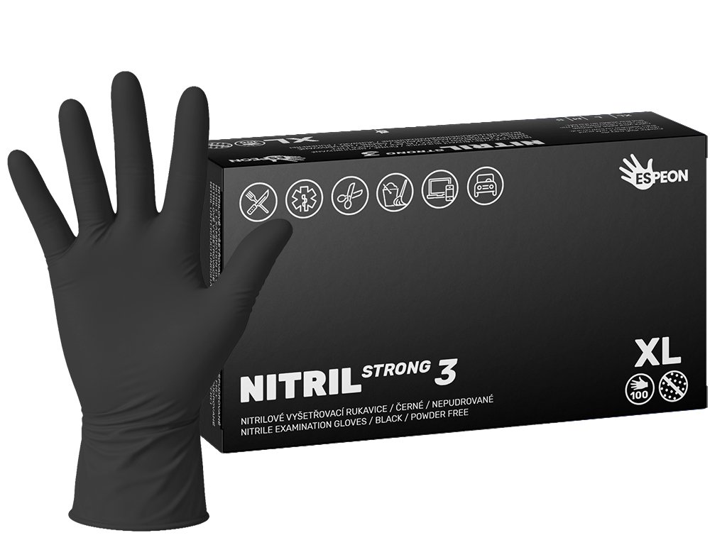 Nitrilové rukavice NITRIL STRONG3 100 ks, nepudrované, černé, 5.0 g