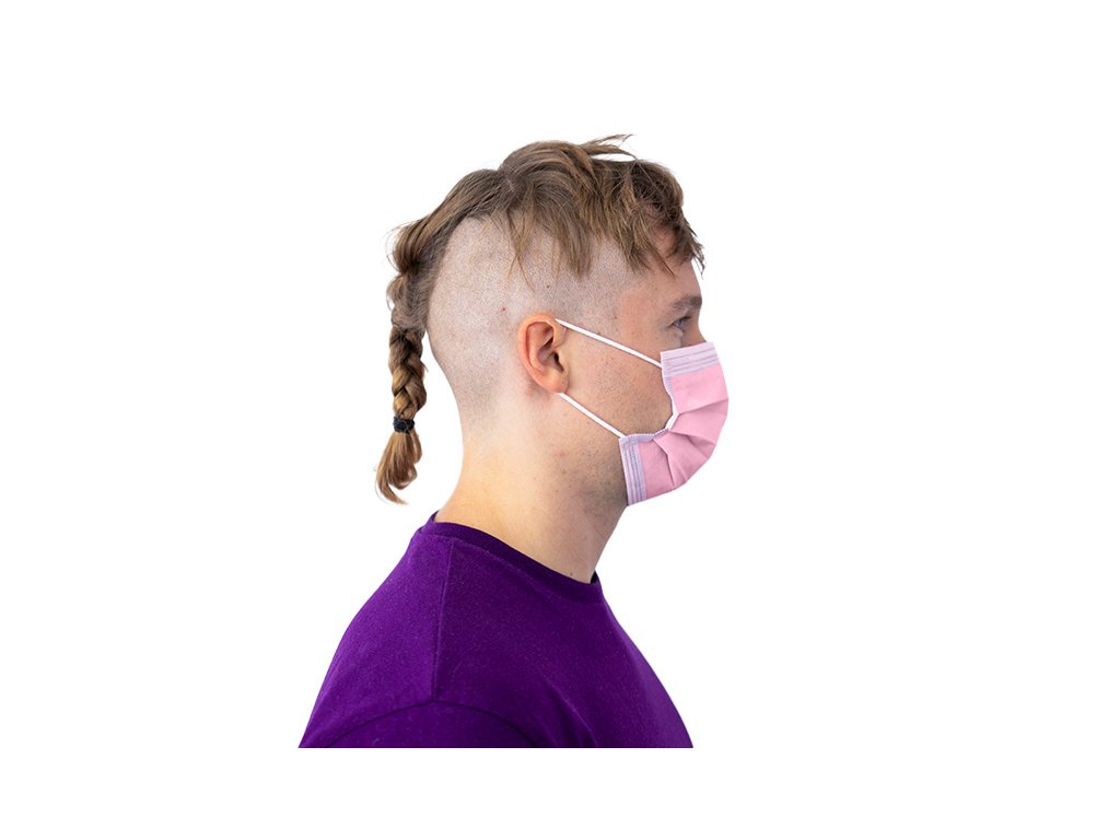 Rouška jednorázová, 3 vrstvá, 175 x 93 mm, 50 ks, růžová
