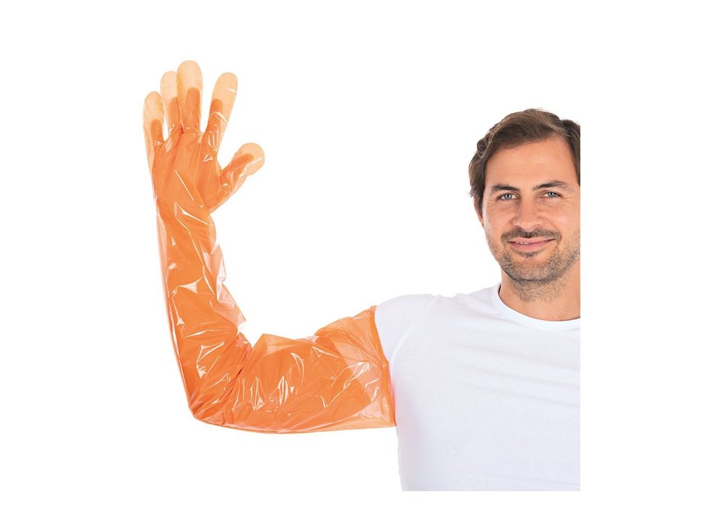 LDPE rukavice 100 ks, 90 cm, nepudrované, oranžové