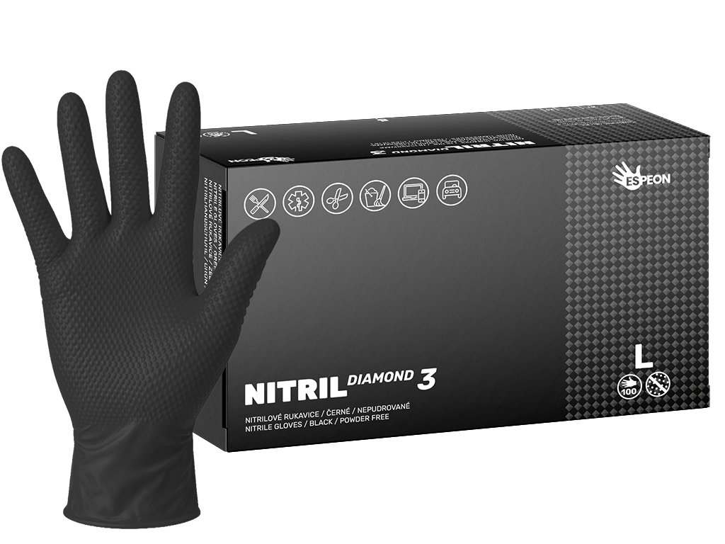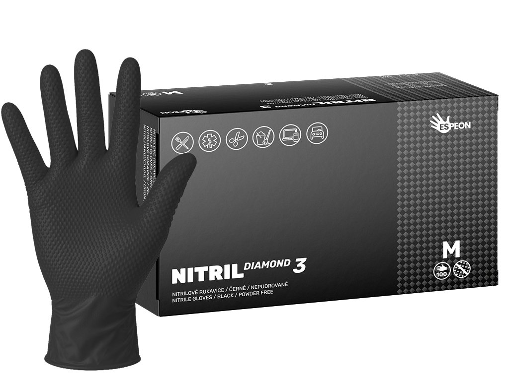 Nitrilové rukavice NITRIL DIAMOND3 100 ks, nepudrované, černé, 8.0 g