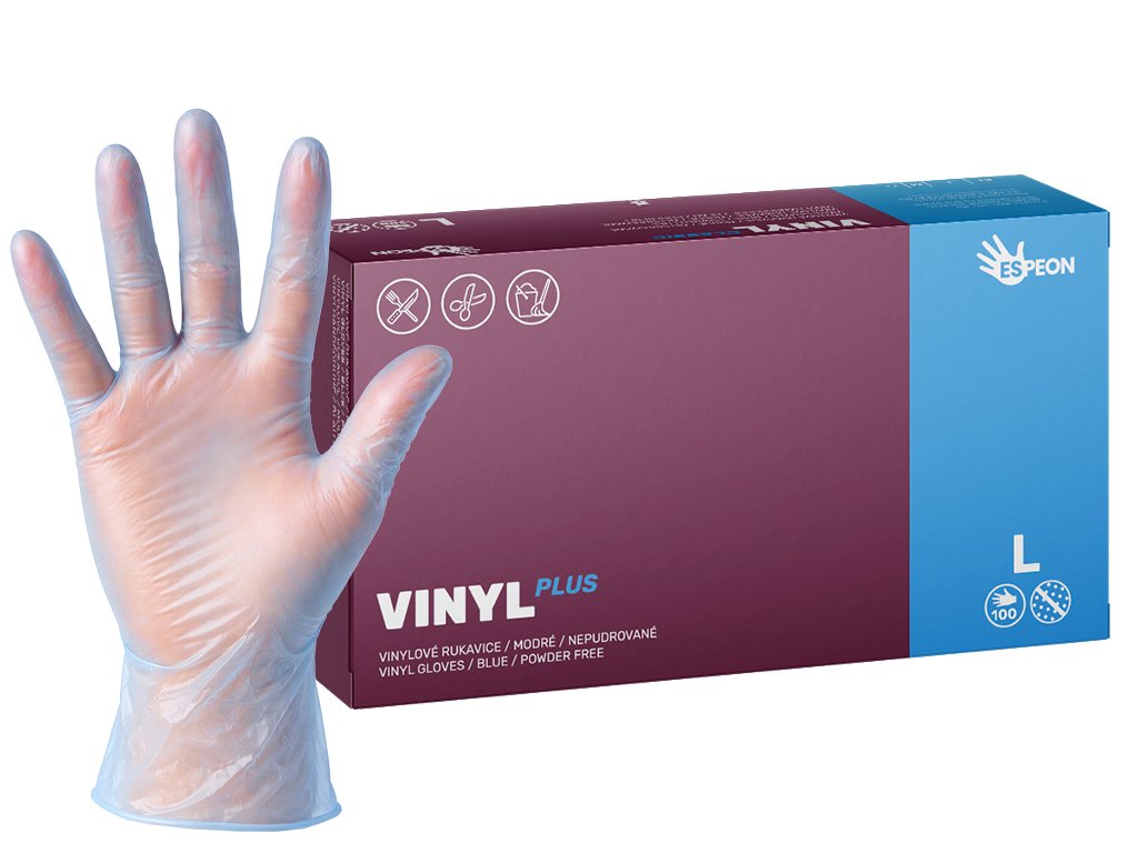 Vinylové rukavice VINYL PLUS 100 ks, nepudrované, modré, 5.0 g