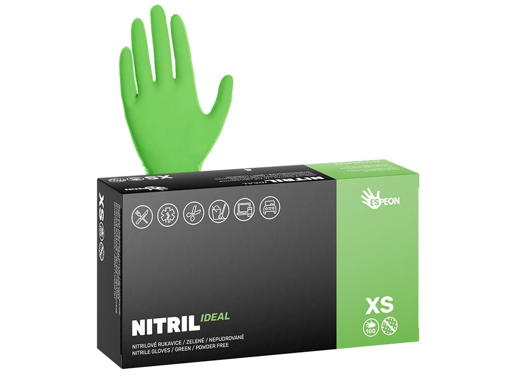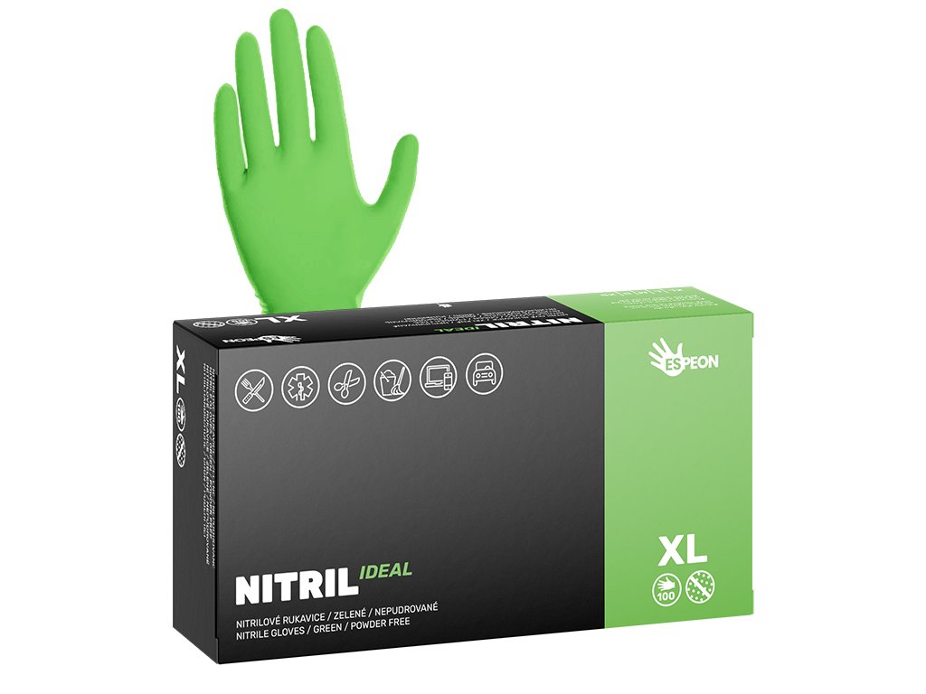 Nitrilové rukavice NITRIL IDEAL 100 ks, nepudrované, zelené, 3.5 g