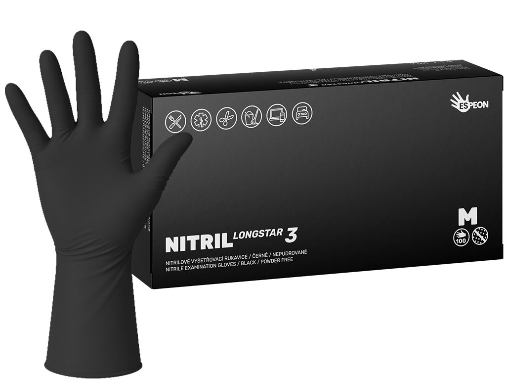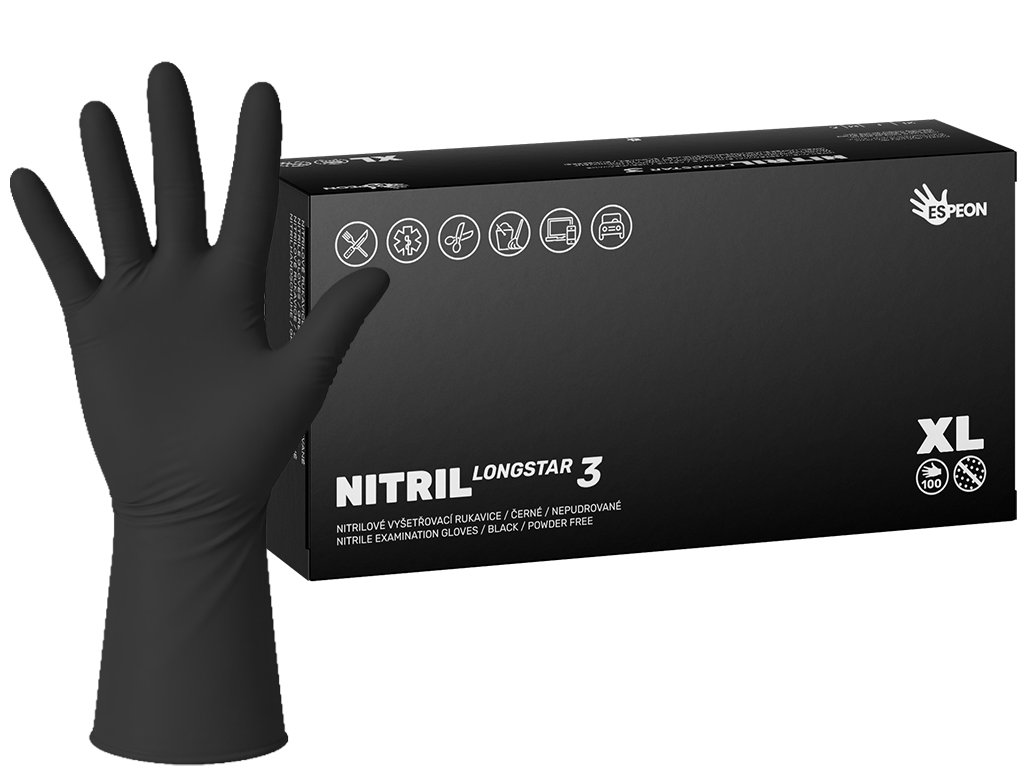 Nitrilové rukavice NITRIL LONGSTAR3 100 ks, nepudrované, černé, 11.4 g