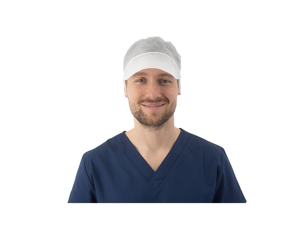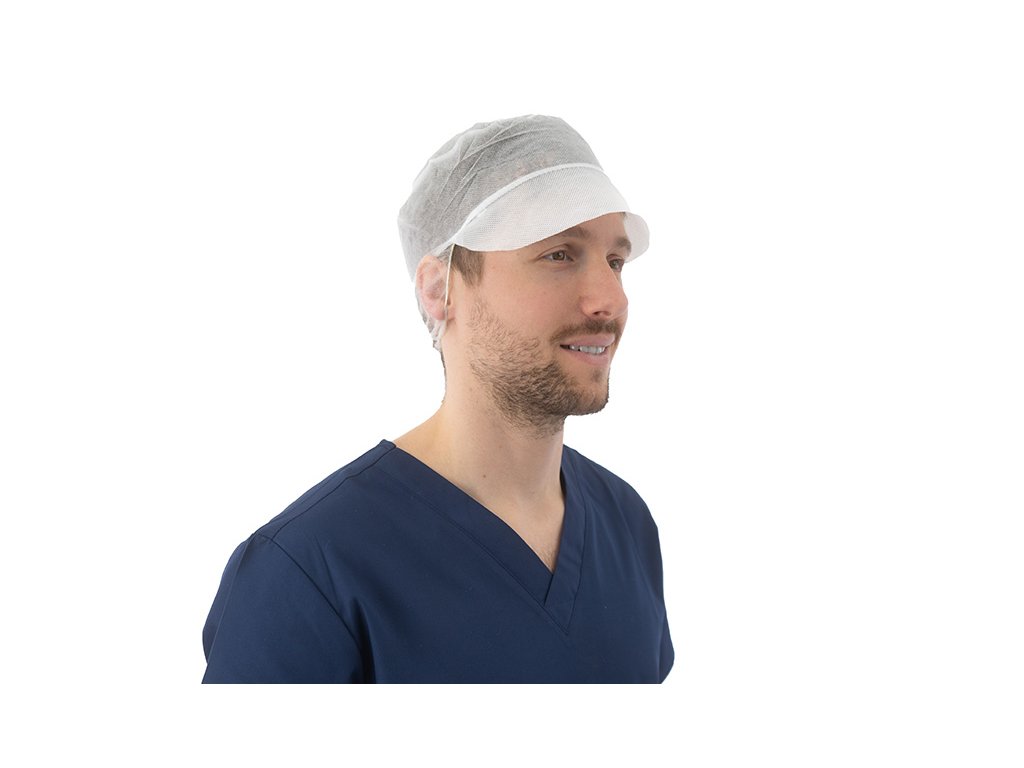 Čepice s kšiltem z netkané textilie, 53 cm, 100 ks, bílá