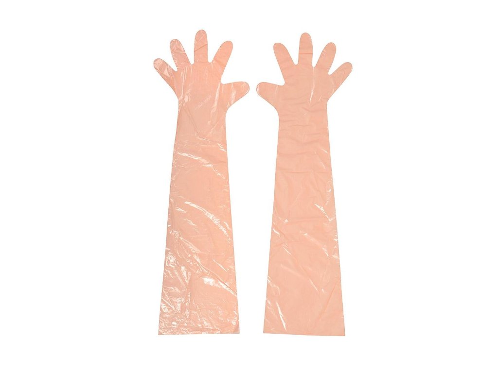 LDPE rukavice 100 ks, 90 cm, nepudrované, oranžové