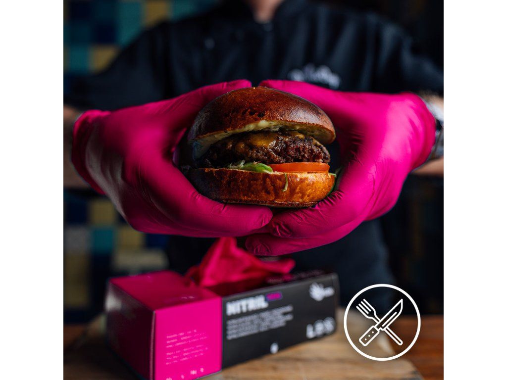 Nitrilové rukavice NITRIL IDEAL 100 ks, nepudrované, magenta, 3.5 g – krabička s drobnou vadou