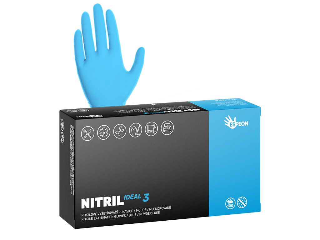 Nitrilové rukavice NITRIL IDEAL3 100 ks, nepudrované, modré, 3.5 g – krabička s drobnou vadou