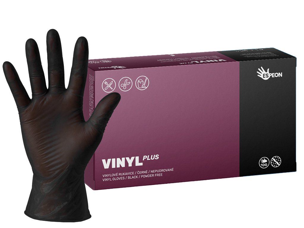Vinylové rukavice VINYL PLUS 100 ks, nepudrované, černé, 5.0 g